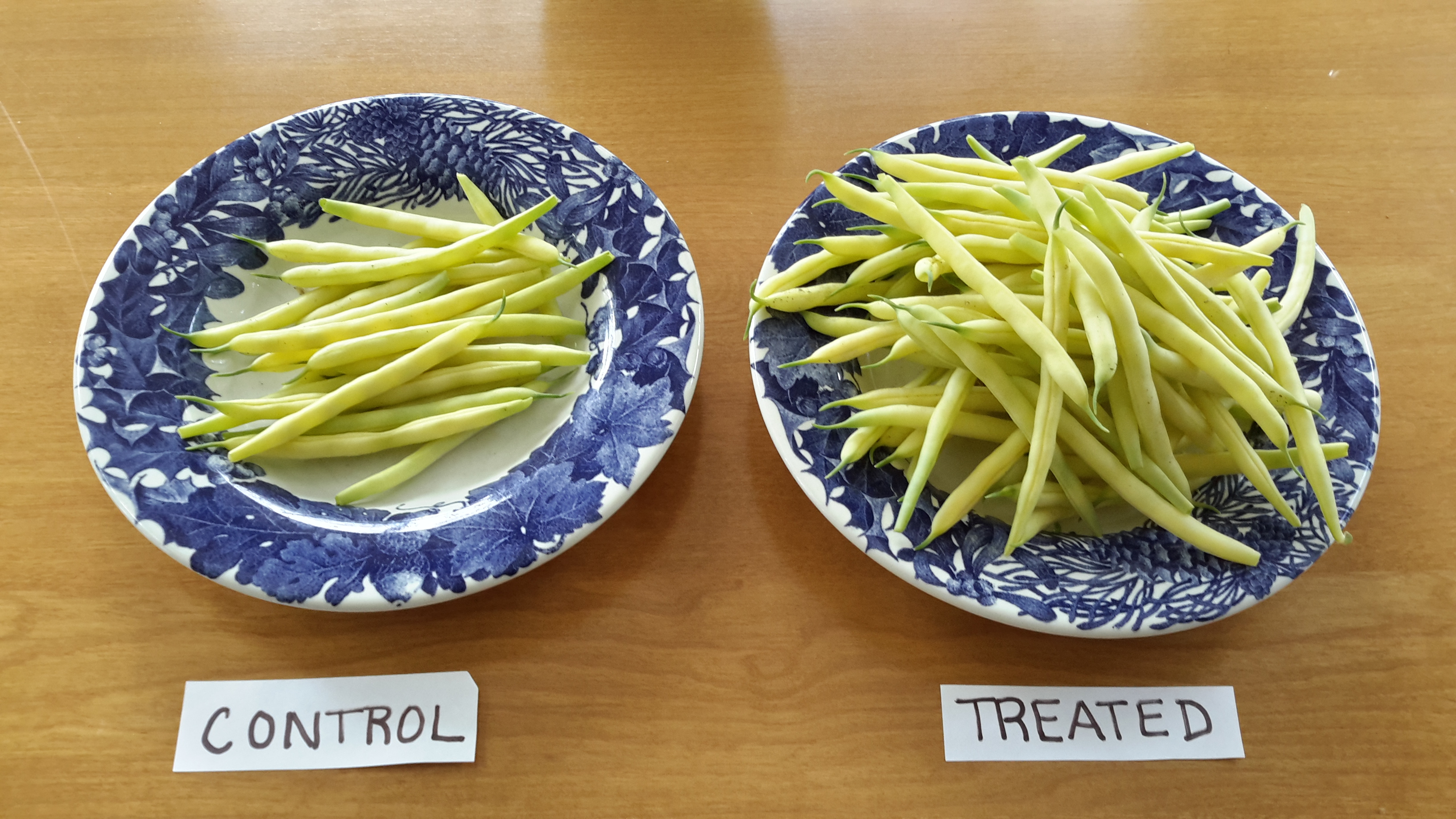 The seeds of the TREATED yellow beans seen in photo received 1 Life Force Energy Transmission in a home project. See the difference!